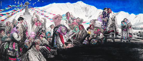 除了上述畫(huà)家外,劉振夏、謝志高等中國(guó)畫(huà)人物畫(huà)高手積淀多年的個(gè)人展覽會(huì)也在中國(guó)美術(shù)館一樓圓廳亮相,老一輩畫(huà)家的最新探索成為其展覽共同的亮點(diǎn)。而諸如李翔、李象群等正值盛年的美術(shù)家也都在各自領(lǐng)域展示了其當(dāng)前重要的創(chuàng)作成果。與這些扎堆在京城辦展的名家不同,吳長(zhǎng)江和馬書(shū)林兩人都不約而同地選擇了在上海美術(shù)館辦展。那個(gè)具有“洋派”味道的美術(shù)館,當(dāng)被吳長(zhǎng)江的新水彩畫(huà)(水性顏料、炭精與紙的最新實(shí)驗(yàn))藏族系列和馬書(shū)林筆下的可愛(ài)貓咪與戲曲人物占據(jù)時(shí),有著海派傳統(tǒng)的上海畫(huà)壇還是為之一振。當(dāng)然,這兩位畫(huà)壇名家會(huì)同劉大為,在不久的將來(lái),或許就是明年的某個(gè)時(shí)段,將帶著他們多年的創(chuàng)作成果,來(lái)到那個(gè)他們既熟悉又陌生的中國(guó)美術(shù)館圓廳,向京城畫(huà)界展示與敘述幾十年來(lái)發(fā)生在他們身上的藝術(shù)故事。