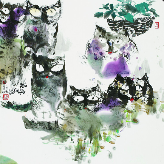 以戲曲人物畫(huà)創(chuàng)作揚(yáng)名的馬書(shū)林,在個(gè)人展覽會(huì)上展出的作品《貓與綠蘿》展現(xiàn)了畫(huà)家的“另一面”