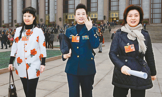 女委員孫萍、宋祖英、李勝素充滿自信地走出人民大會堂 新華社記者 金良快 攝