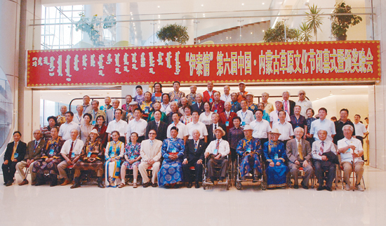2009年7月15日晚,內(nèi)蒙古自治區(qū)文學(xué)藝術(shù)杰出貢獻(xiàn)獎頒獎晚會在烏蘭恰特大劇院隆重舉行,圖為內(nèi)蒙古自治區(qū)黨委、政府和中國文聯(lián)有關(guān)領(lǐng)導(dǎo)與獲獎?wù)吆嫌?/font>