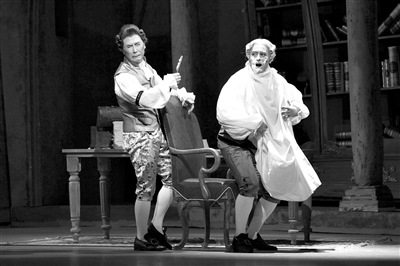 廖昌永(左)在《塞維利亞理發師》中扮演“大忙人”理發師費加羅。 王小京 攝