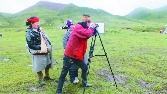 青海果洛藏族聚居區的牧民在練習影像拍攝技術