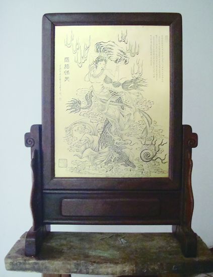 第八屆中國(長春)民間藝術博覽會金獎作品刻銅《女媧補天》 杜 平