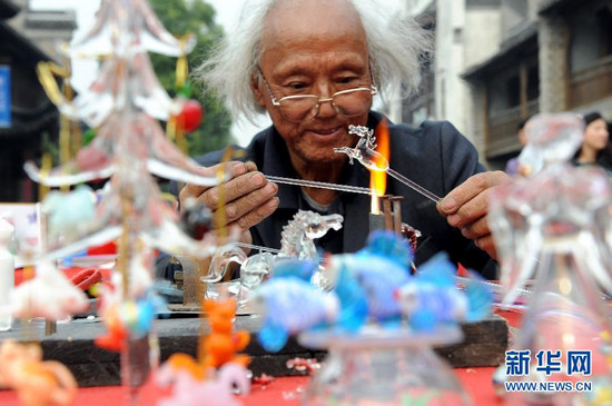11月8日,玻璃畫藝人吳新安在比賽中制作一件玻璃馬工藝品。新華社記者 孫參 攝