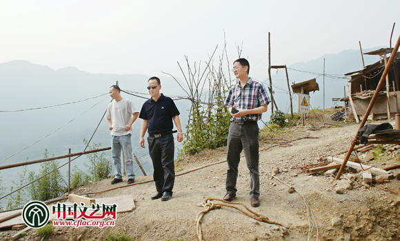 二○一三年五月二十三日(生命中的最后一天),蘭輝同志(右一)帶病在治新二橋檢查安全生產(chǎn)工作 北川縣委宣傳部供圖