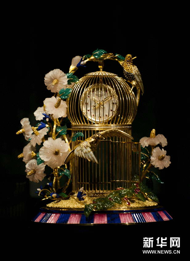 ??? (1)這是百達翡麗“金絲鳥籠”座臺鐘,估價300萬至500萬港元(2月26日攝)。