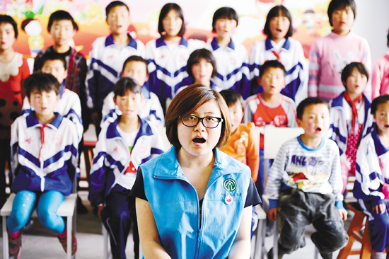 文藝支教志愿者周可欣在甘肅隴南教孩子唱歌