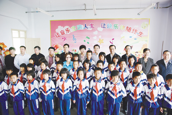 4月28日,中國文聯黨組書記、副主席趙實和中國曲協主席、中國文學藝術基金會副理事長姜昆在甘肅隴南馬街小學親切看望正在上藝術課的孩子們。