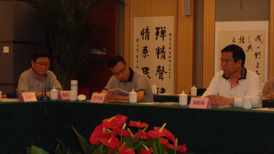 山東省文聯黨組成員、副主席、音協主席張桂林(左),中共城陽區委常委尹世逸(中),山東省音樂家協會副主席劉新海在研討會上的留影 孟祥寧 攝