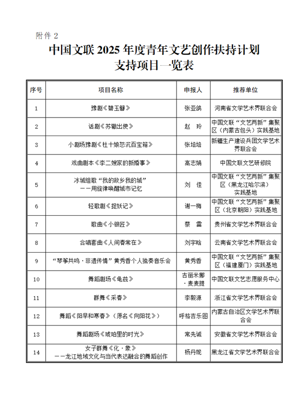 2.中國文聯2025年度青年文藝創作扶持計劃支持項目一覽表