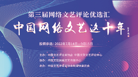 從2012年黨的十八大到2022年我們即將迎來黨的二十大勝利召開,這十年,是中國特色社會主義進入新時代的十年,是黨和國家事業發展中極不平凡的十年,也是文藝事業格局一新、氣象一新、境界一新,守正創新、繁榮發展的十年。中國社會與文藝界的這一系列深刻變化,在這十年網絡文藝的繁榮發展中得到生動體現。回望十年,展望未來。在這個重要的時間節點,中國文藝評論家協會、中國文聯文藝評論中心舉辦第三屆網絡文藝評論優選匯,旨在認真貫徹落實中宣部等五部門《關于加強新時代文藝評論工作的指導意見》,總結網絡文藝發展規律,發現一批優秀評論作品和優秀中青年評論人才,進一步凝聚網絡文藝評論人才隊伍,匯聚網絡文藝評論創新發展的合力,構建山清水秀的文藝生態,以優異成績迎接黨的二十大勝利召開。