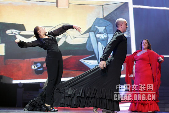10月7日晚,由中國文聯和江蘇省人民政府共同主辦,江蘇省文化廳、江蘇省文聯、蘇州市人民政府聯合承辦的第八屆中國國際民間藝術節,在蘇州工業園區科技文化藝術中心隆重開幕。圖為西班牙喬尼弗拉明戈舞團演出《過客》。中國文聯網 孟祥寧 攝