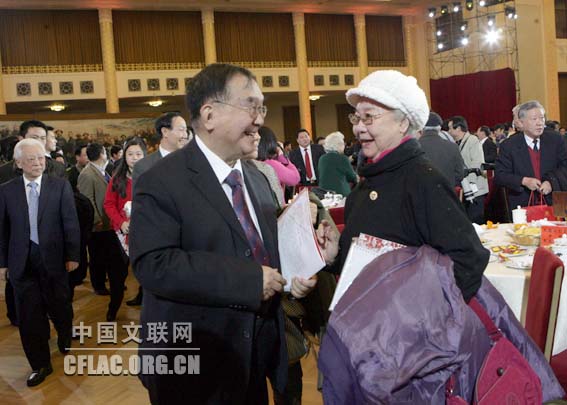 1月16日,“百花迎春——中國文學藝術界2011春節大聯歡”在人民大會堂舉行。圖為藝術家在聯歡會現場歡聚。中國文聯網 孟祥寧 攝