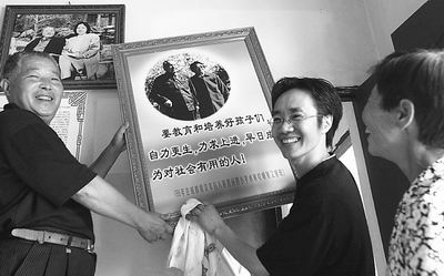 “左邊低了一點,再往上。”今天下午,在牌坊新村見到淡文全時他正忙著和家人一起,往自家墻上掛一幅新的畫像,畫像中除了鄧小平夫婦的合影,還寫有1986年鄧小平夫婦在成都與舅父舅母見面時,就淡家后人前程問題的一番殷切囑咐:“要教育和培養(yǎng)好孩子們,自力更生,力求上進,早日成為對社會有用的人!”