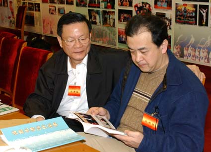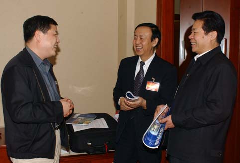 李樹文(中)、甘英烈(左)看望與會委員。