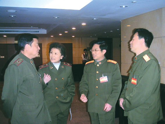 部隊委員在暢談。左為姚遠、左二為宋春麗、右為明振江、右二為王兆海。