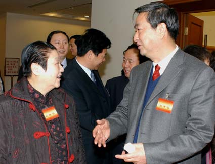 關牧村(左)與殷秀梅殷(右)親切交談。