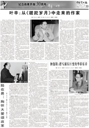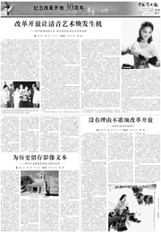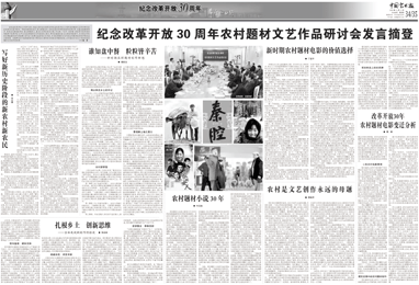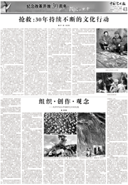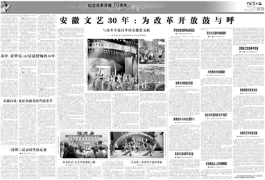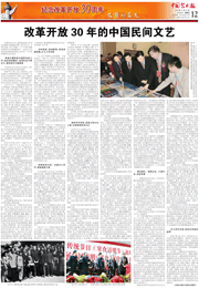 “文藝的春天”板塊(第5版至16版)為您呈現(xiàn)的,正是中國文聯(lián)及各文藝家協(xié)會改革開放30年來走過的道路,正是中國文聯(lián)及各文藝家協(xié)會團(tuán)結(jié)帶領(lǐng)廣大文藝工作者,為中華文化復(fù)興而描繪出的一道道迷人風(fēng)景。 |