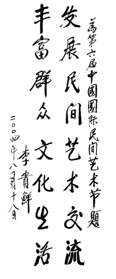 李貴鮮為第六屆中國國際民間藝術節題詞