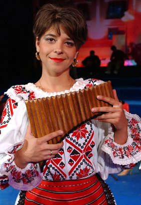 羅馬尼亞的排簫,從外形和演奏方法上都非常酷似中國的排簫。它們是由一個個不同長度的木制管,用特殊的膠水粘成一排,由短到長、由低音到高音排成一組所組成。這種樂器可以演奏21個不同音高的音,其中包括半音與全音。羅馬尼亞“云雀”藝術團音樂組演員內阿古·奧阿娜向記者介紹說,在演奏時,下嘴唇不能緊靠在管口上,而應是輕輕地貼在管口邊,運用來自腹部的氣息輕輕吹奏。由于排簫易于學習,且聲音動聽優美,因此在羅馬尼亞,老年、少年基本都會演奏。